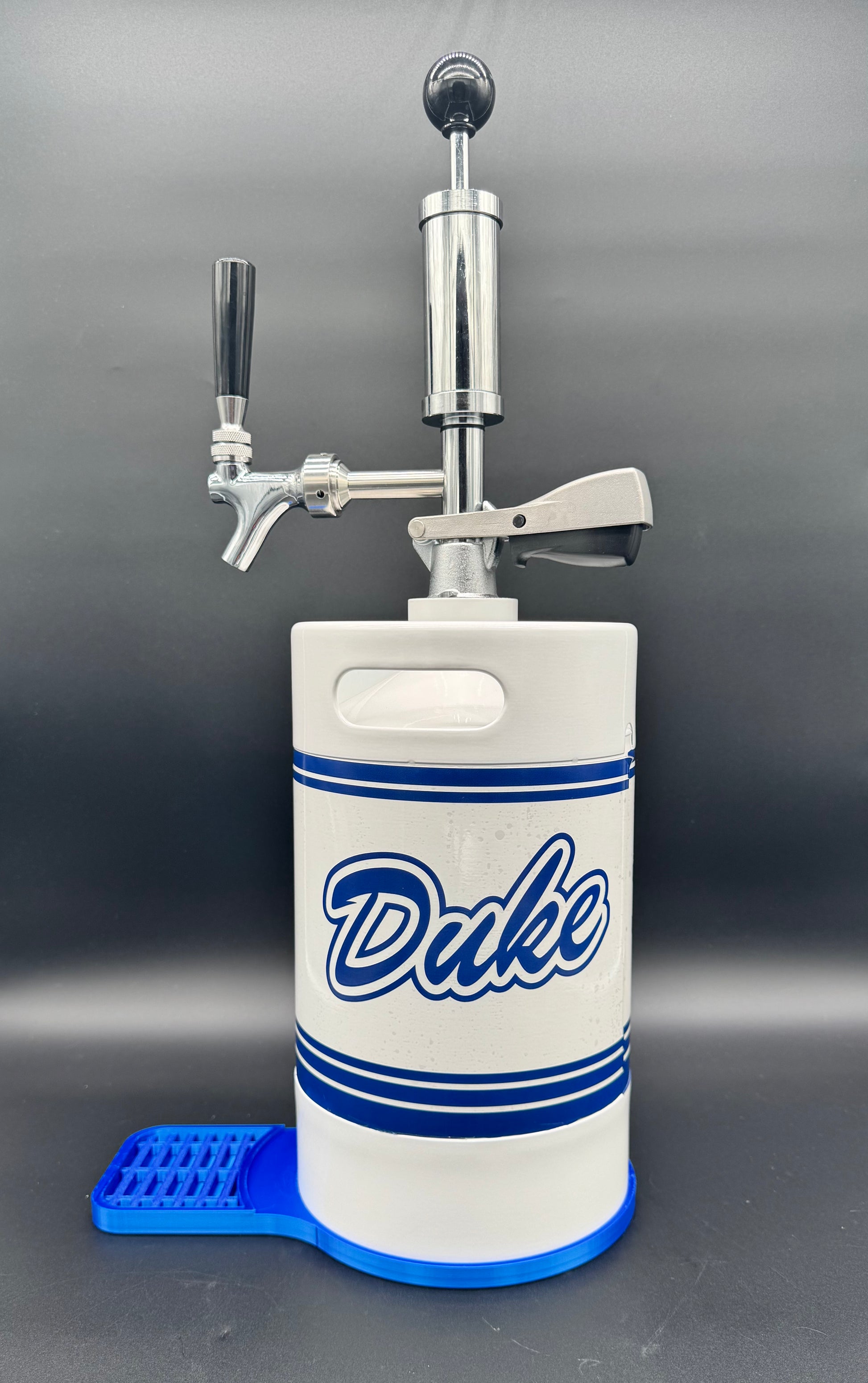 5L WHITE Duke (large) customized Pump Keg, standard tap, keg opener, blue drip tray, 26 cocktail recipes, 16 shot recipes included. Packed nicely in a gift box. Holds 30-35 cocktails (169 fluid oz) NO RETURNS